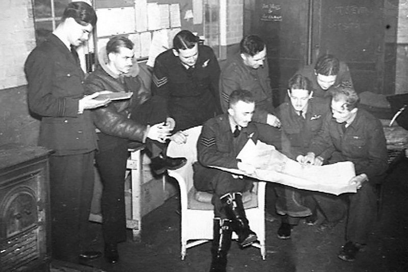 Photo 1 - Sqn Ldr Olive, DFC (3rd from the right) checks out documents.